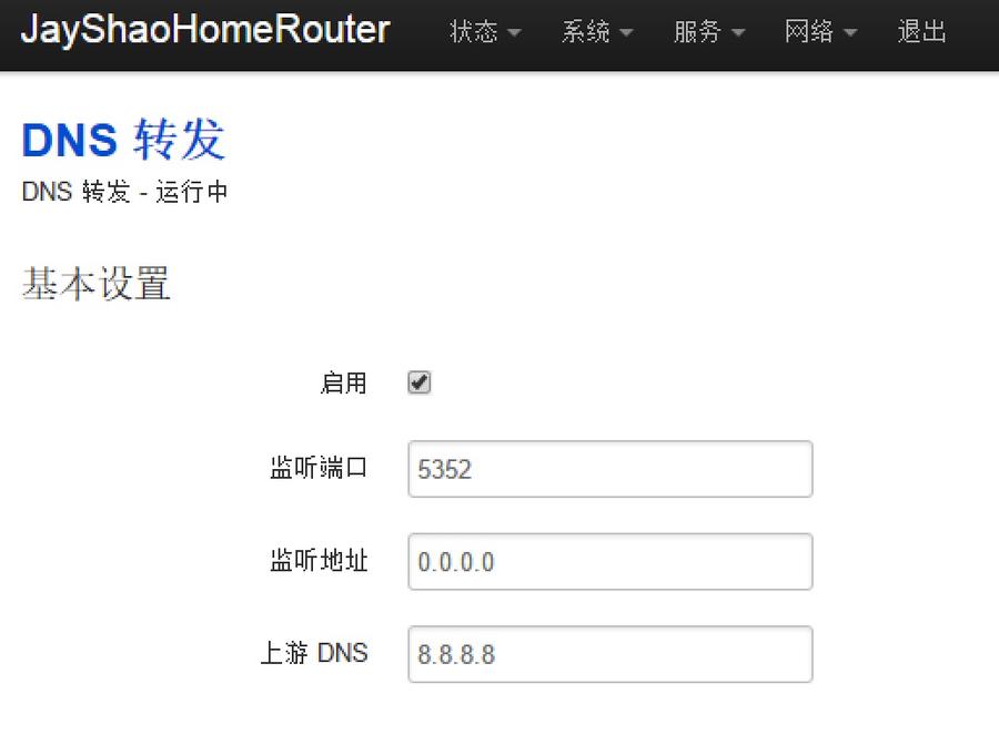 DNS-Forwarder配置比较简单,只需要设置监听端口和上游DNS即可,这里我设置了监听端口为5352: